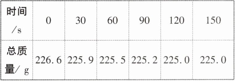 9. 日常生活情境 医疗用品 医学上常用双氧水(过氧化氢的水溶液)来清洗创口和局部抗菌,小明同学取120.0g某医用双氧水于烧杯中,向其中加入少量二氧化锰,每隔30s记录反应过程中装置(烧杯+试剂)的质量,记录结果如下表,计算120.0g该医用双氧水中过氧化氢的质量。