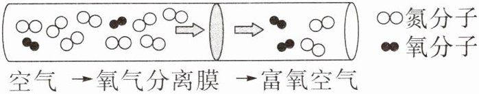 (1)富氧膜制氧机和分子筛式制氧机的原理都是分离空气中的氧气和氮气。如图是富氧膜制氧机的工作原理。空气中的氧气和氮气通过分离膜,渗透速率快的分子富集在另一端,从而得到含氧量较高的富氧空气。