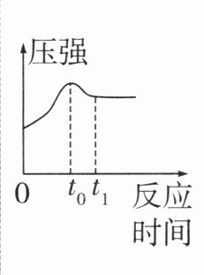 (填"增大"或"减小",后同);t₀时:反应结束$;t₀~t_1$段:温度恢复至室温,导致压强减小