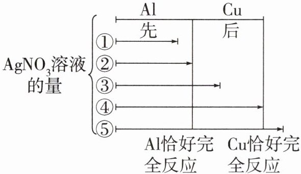 ⑤Al(NO₃)₃、Cu(NO₃)₂、AgNO₃ Ag