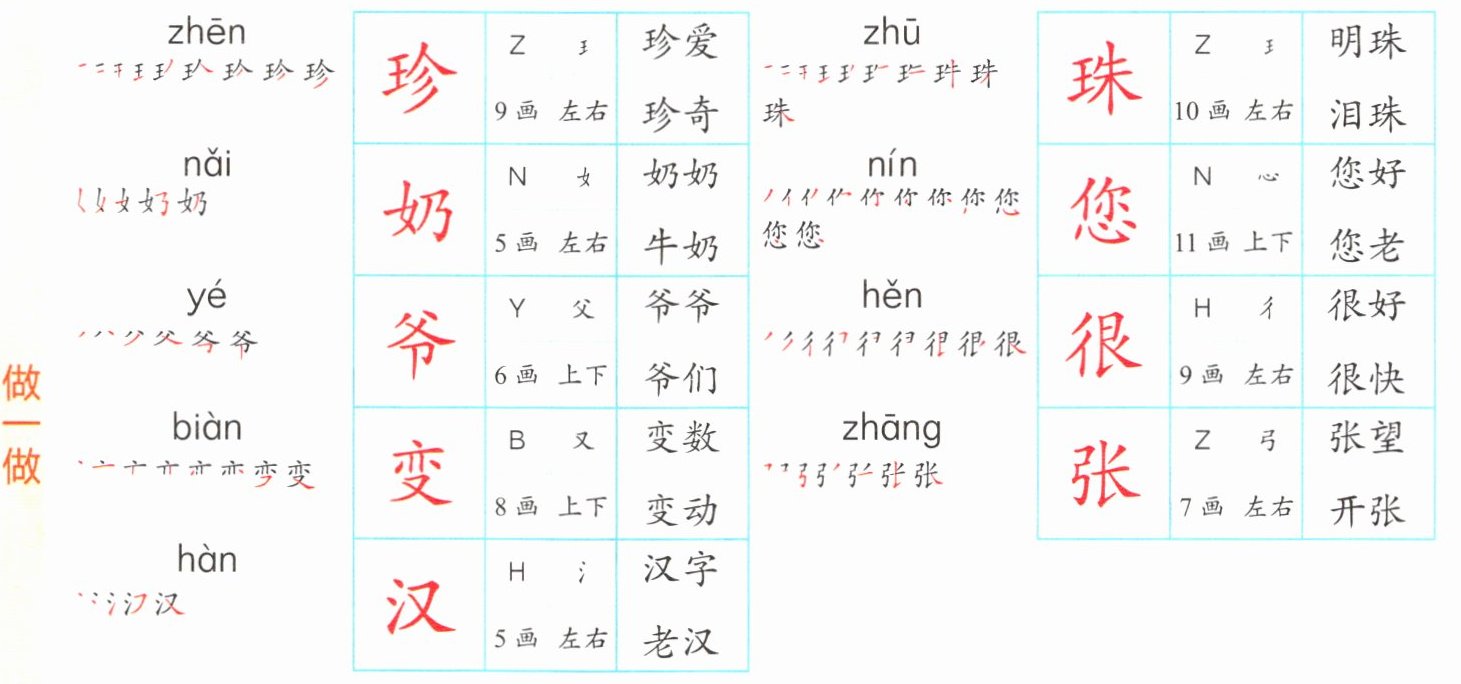 珍:已描红,读音zhēn,9画,结构左右,部首王,组词珍爱、珍奇。