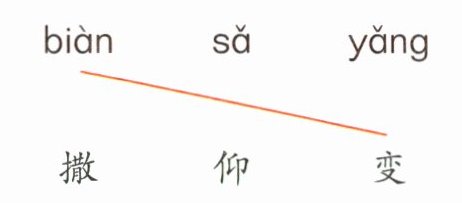 biàn-变,sǎ-撒,yǎng-仰,kè-刻,héng-衡,chǔ-楚,zhuàn-转圈,zhuǎn-转身