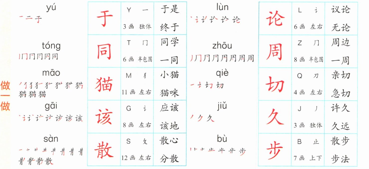 同:tóng,一同(题目给出同为同学,写一同亦可),描红“同”字;
