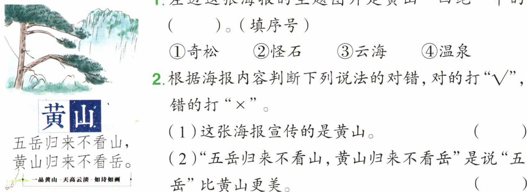 (1)这张海报宣传的是黄山。( )