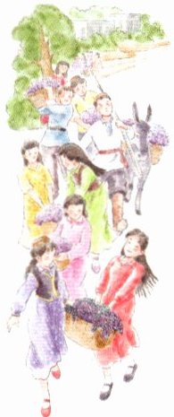 葡萄一大串一大串地挂在绿叶底下,有红的、白的、紫的、淡绿的,五光十色,美丽极了。要是这时候你到葡萄沟去,热情好客的维吾尔族老乡,准会摘下最甜的葡萄,让你吃个够。