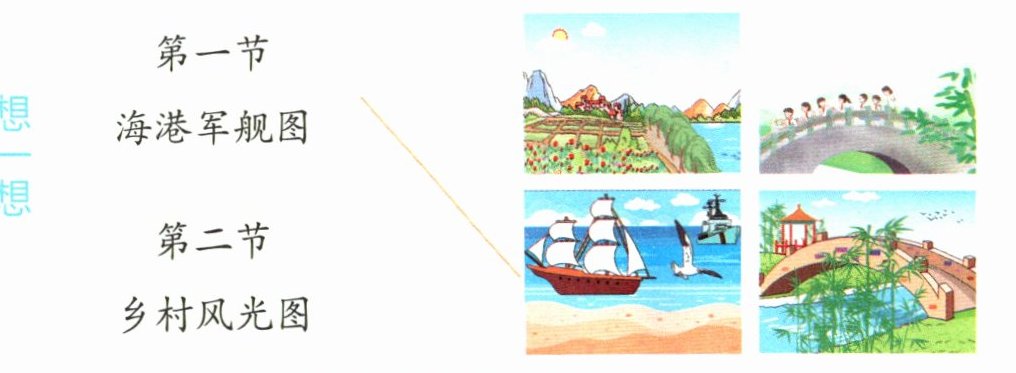 课文每一节都描绘了一幅画面。照样子,连一连。
