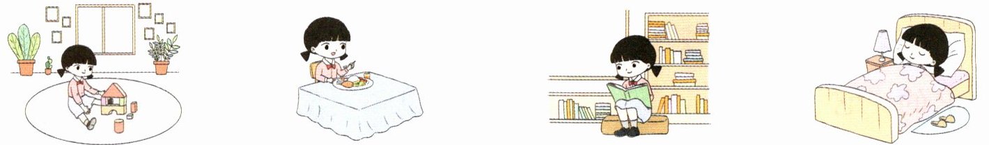 1.跑步 踢足球 2.搭积木 吃饭 看书 睡觉