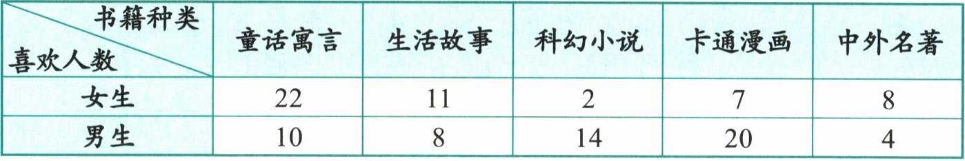 【材料一】三年级(2)班学生喜欢的课外书籍调查表