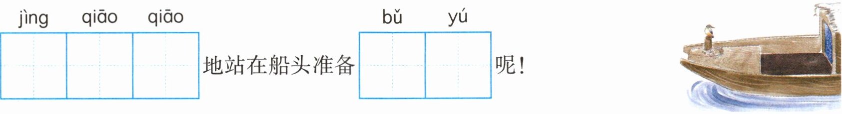 动作 (衔着)小鱼 ( )蓑衣 ( )船橹 ( )小船