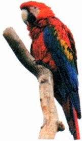 2.这只鹦鹉的羽毛是红色、蓝色和黄色相间的,嘴巴和眼睛周围是白色的,可漂亮啦!