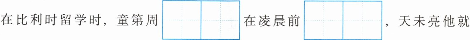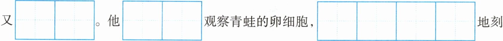 在比利时留学时,童第周 nán dé 在凌晨前 rù shuì,天未亮他就 qǐ chuáng fǎn fù 观察青蛙的卵细胞, bù shēng bù xiǎng 地刻苦研究,终于取得成功。教授 xīng fèn 地夸奖他真行。