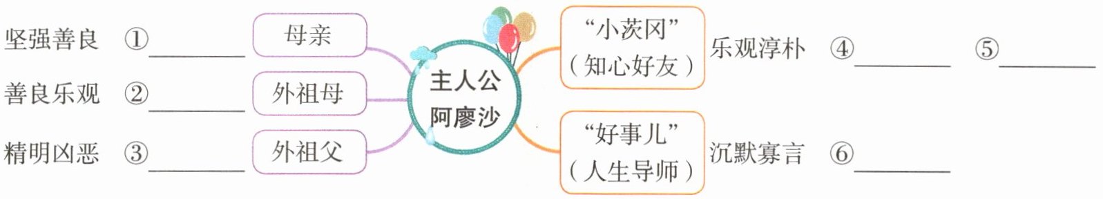 三、先补全《童年》的人物导图(填序号),再完成练习。