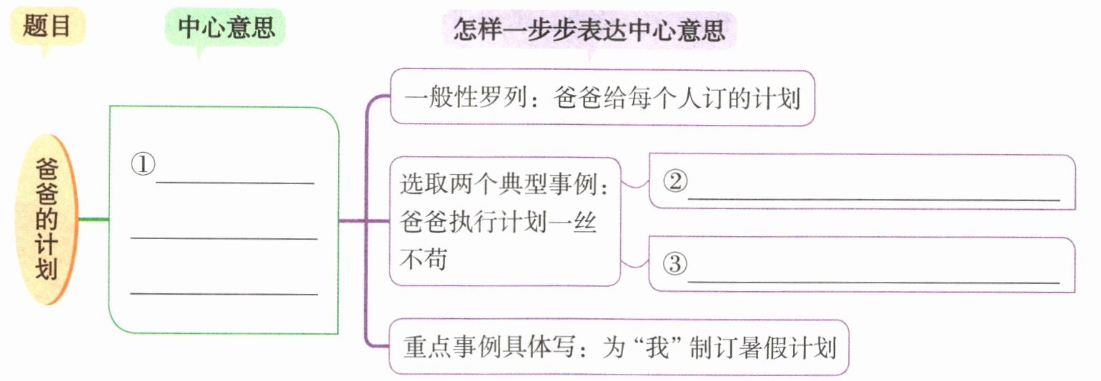 一、阅读《爸爸的计划》,补充思维导图。(目标:506)