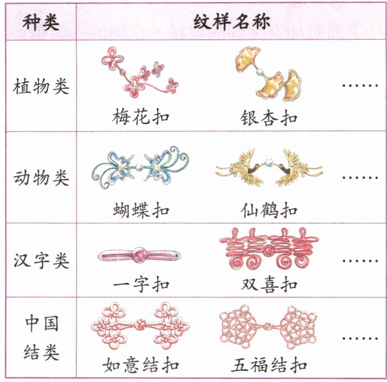 | 动物类 | 蝴蝶扣、仙鹤扣…… |