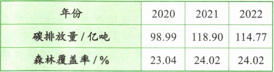 (3)2020至2022年,我国的碳排放量和森林覆盖率每年均有明显增长。( )