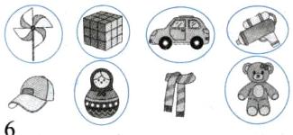 1. 先将下面的玩具圈出来,再填一填。