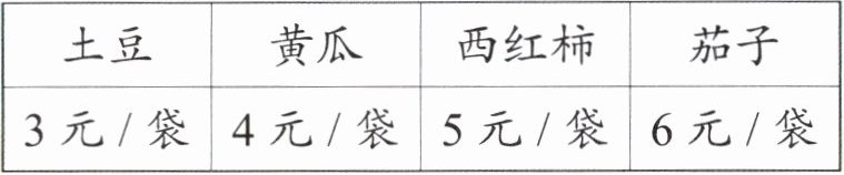 妈妈买的可能是4袋土豆或3袋黄瓜或2袋茄子。