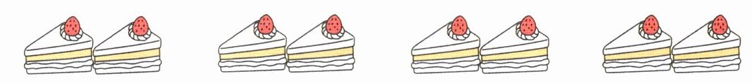 一共有( )块蛋糕,每( )块一份,平均分成了( )份。