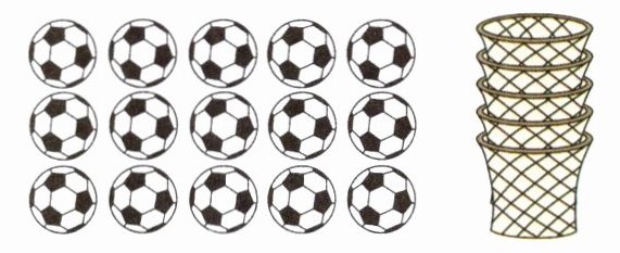 2.15个足球平均放在( )个筐里,每筐放几个?