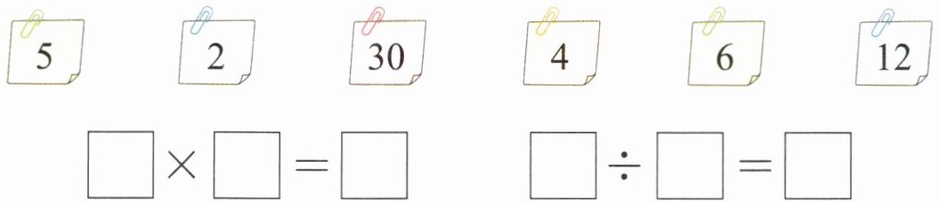 5 从下面的数中选3个数,写出一个乘法算式和一个除法算式。