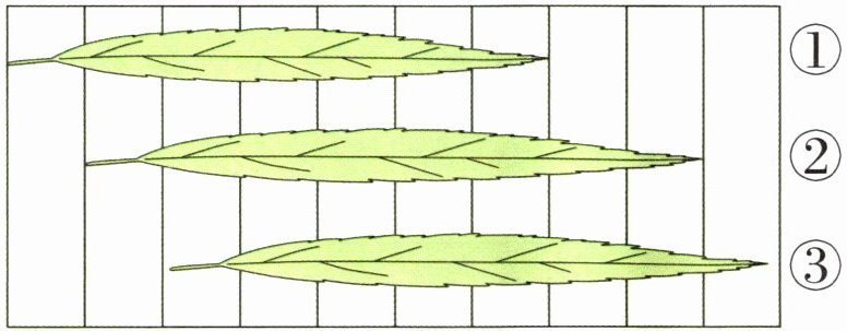 2. 比一比:( )号树叶最短。