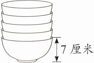5 如图,每只碗的大小相同,高度都为7厘米,两只碗摞在一起时,重叠部分高5厘米,这摞碗有多高?