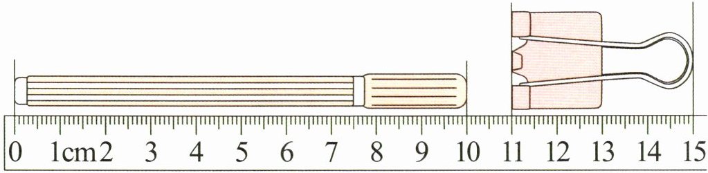 (1)如图,彩笔长( )厘米,夹子长( )厘米。
