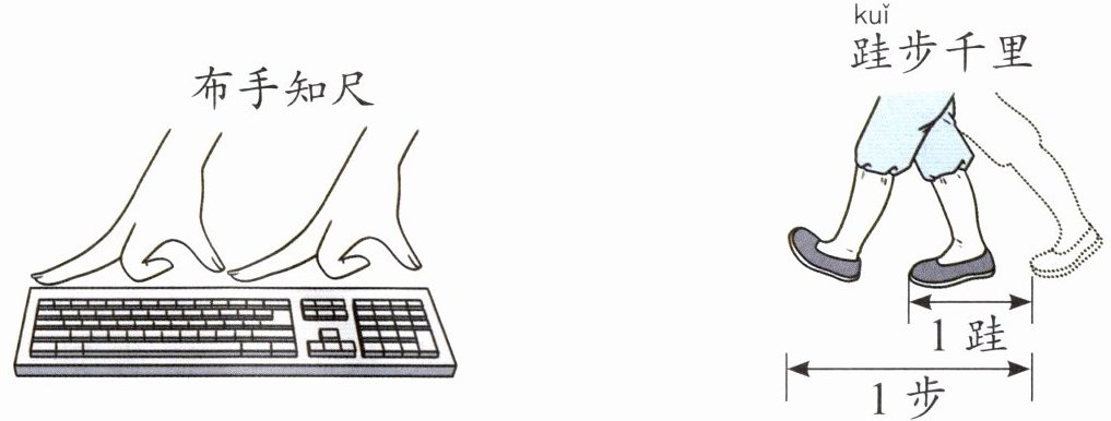 解析:可以提出用乘法或除法解决不同的问题,如12拃是多少个键盘的长,5步有多少跬等,合理即可。