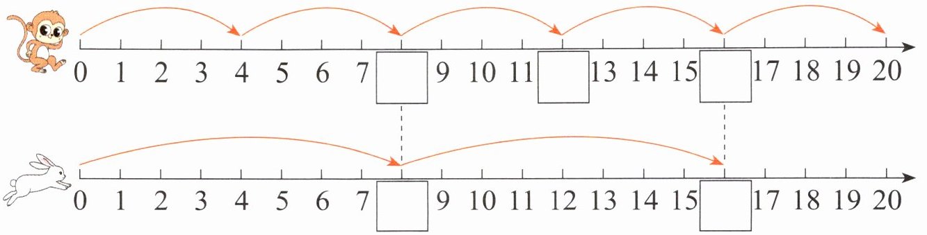小兔跳一次相当于小猴跳( )次;小兔跳 2 次相当于小猴跳( )次。