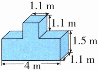 表面积:4×1.1×2+1.1×1.5×2+4×1.5×2+1.1×1.1×4=28.94(平方米);体积:1.1×1.1×1.1+4×1.1×1.5=7.931(立方米)