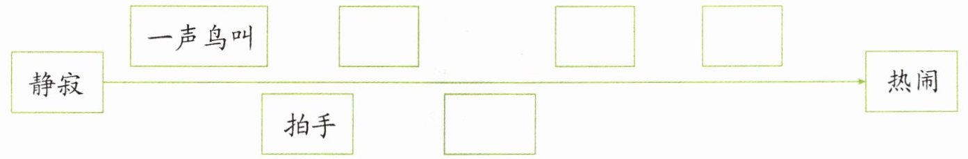 【供选词句:①继续拍掌 ②一只画眉飞出飞进 ③一只大鸟飞了起来 ④到处是鸟声、鸟影】