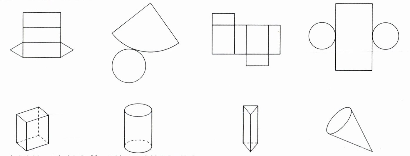 19. (4分)如图,上面的平面图形分别是下面哪个立体图形的展开图? 请你把有对应关系的平面图形与立体图形连接起来.