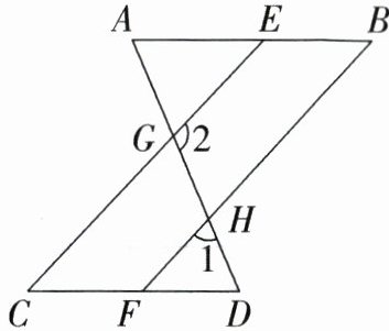 (1)因为∠1=62°,∠1+∠BHD=180°,所以∠BHD=118°.因为∠2=118°,所以∠BHD=∠2,所以CE//BF.