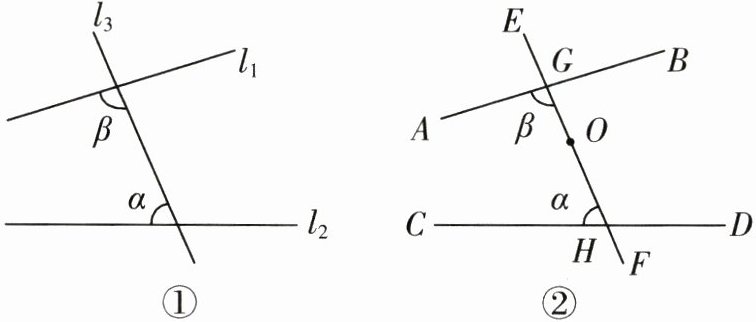 (2)如图②,已知 $ \angle \beta $ 是 $ \angle \alpha $ 的内联角,点 $ O $ 是线段 $ GH $ 上一定点.