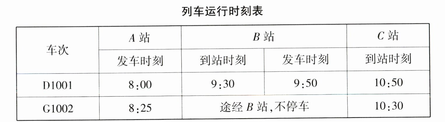 (1)90 60 【解析】D1001次列车从A站到B站行驶了90分钟,从B站到C站行驶了60分钟.