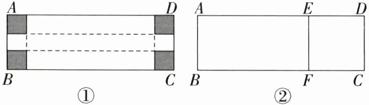 (2)深入探究:兴趣小组为了充分利用硬纸板(硬纸板无剩余),采用新的裁剪方法:如图②所示,用EF把长方形ABCD分成2个长方形,将长方形ABFE折叠成纸盒的侧面,将长方形CDEF做纸盒的下底面,做成一个无盖的长方体纸盒,请你求这个纸盒底面的边长.