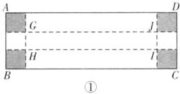(1) 28 【解析】如图①,因为AD = BC = 15,AB = CD = 3,所以GJ = HI = 15 - 2 = 13,GH = IJ = 3 - 2 = 1,所以底面周长为GJ + HI + GH + IJ = 28.