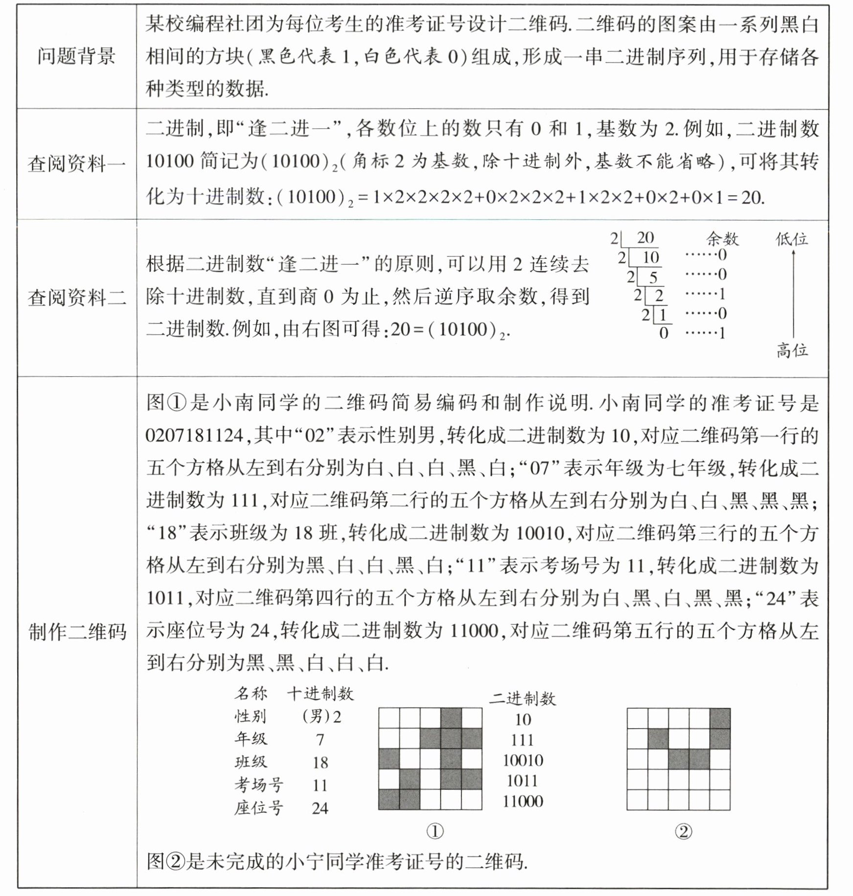 (3)如图②,所以十进制数13转化为二进制数为1101,则完善后的二维码如图①所示.
