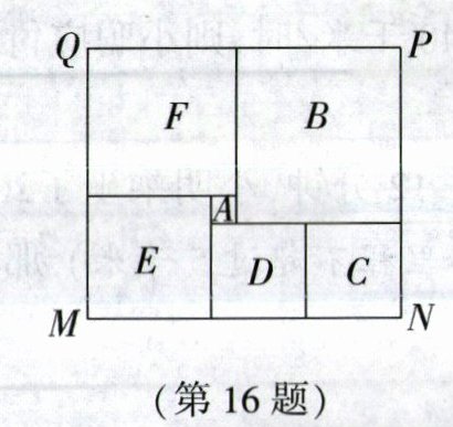 16. 如图,长方形MNPQ由6个正方形拼成,已知中间最小的正方形A的边长是1,则图中最大的正方形B的边长是