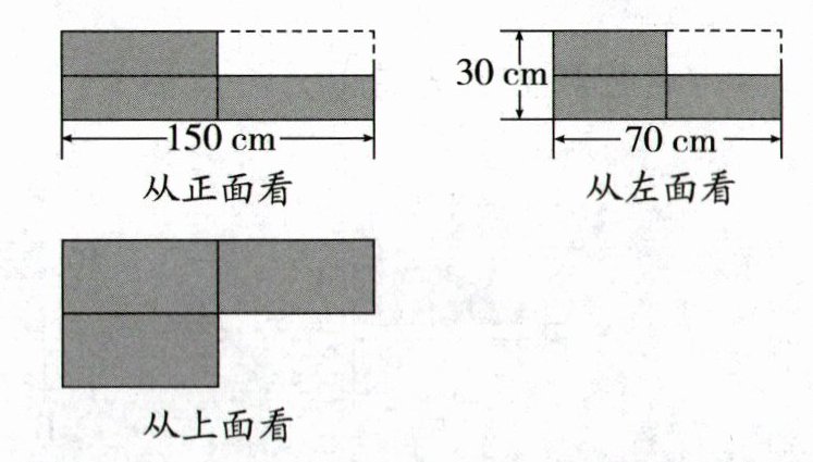 (3)根据三视图可得礼盒的长、宽、高分别为75cm,35cm,15cm,一共有4个礼盒,要使包装的纸最少,应该把长方体最大的面重合在一起,即把75×35的面重合在一起,这样包装后的长方体,长是75cm,宽为35cm,高为15×4=60(cm),依题意,(75×35+75×60+60×35)×2=18450($\text{cm}^2$)=1.845($\text{m}^2$).答:最少需要1.845$\text{m}^2$包装纸.