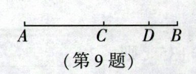 9. 如图,点C,D在线段AB上,点C为AB的中点,若$AB= 12cm,AD+BC= 4CD$,则BD的长度是