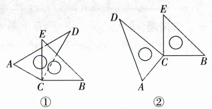 15. (10 分)如图①,将两块直角三角尺的直角顶点 $ C $ 叠放在一起.