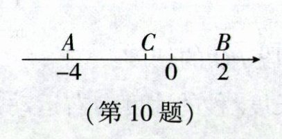 10. 如图,数轴上A,B两点所表示的数分别是-4和2,点C是线段AB的中点,则点C所表示的数是