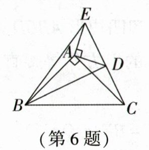 6. 如图,在$△ABC,△ADE$中,$∠BAC= ∠DAE= 90^{\circ },AB= AC,AD= AE$,点 C,D,E 三点在同一条直线上,连接 BD,BE.以下四个结论: