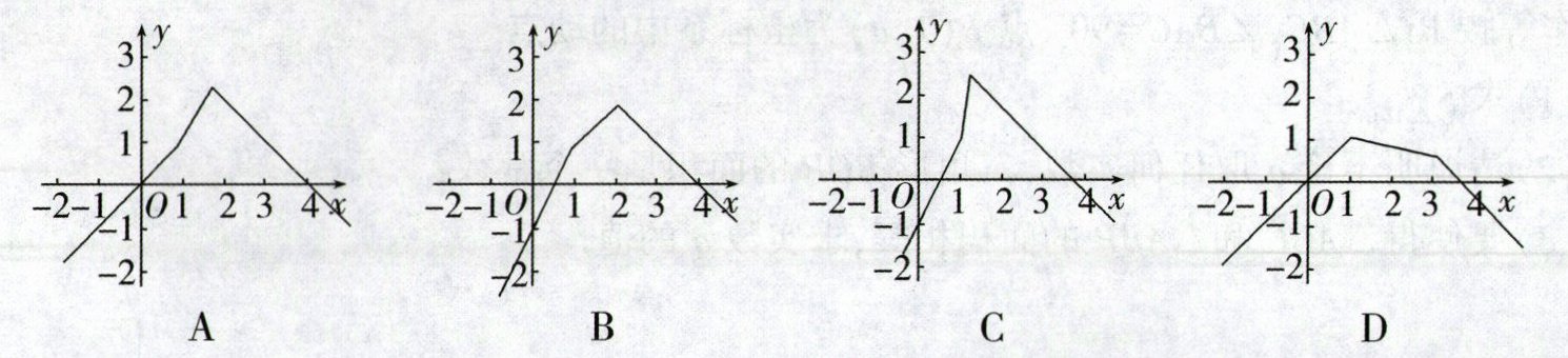 B [解析]如图所示为函数y=x,y=2x−1,y=4−x的图象,可得$y = \begin{cases}2x - 1, & x < 1\\x, & 1\leq x\leq 2\\4 - x, & x > 2\end{cases}$。故选B。