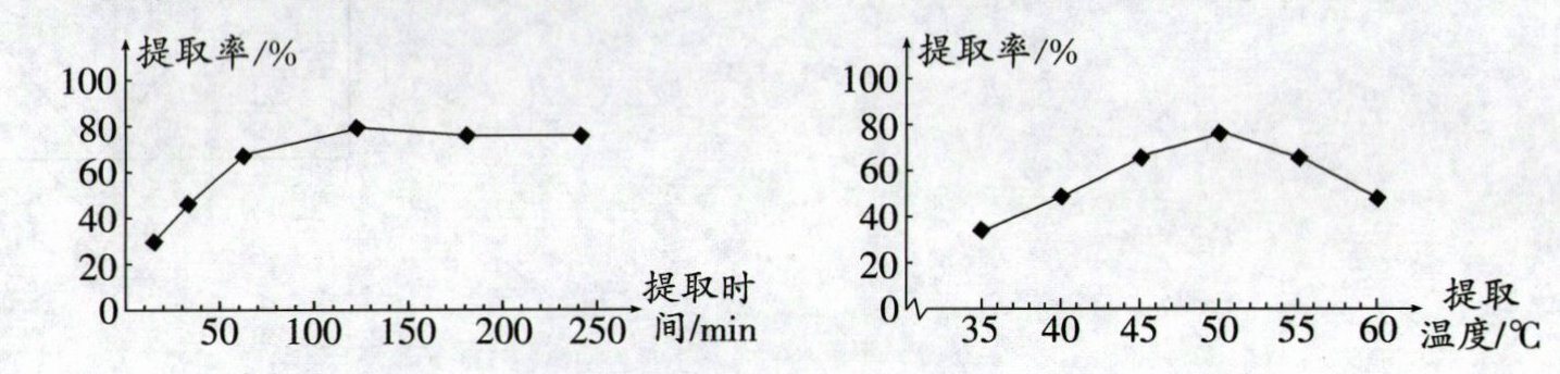 B [解析]由题图可知,在120min时提取率最高,50℃时提取率最高,故最佳的提取时间和提取温度分别为120min,50℃.故选B.
