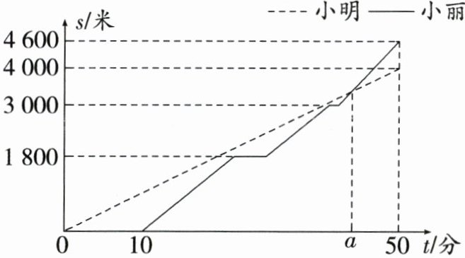 ∵小丽第二次休息后,在a分钟时两人跑步累计里程相等,