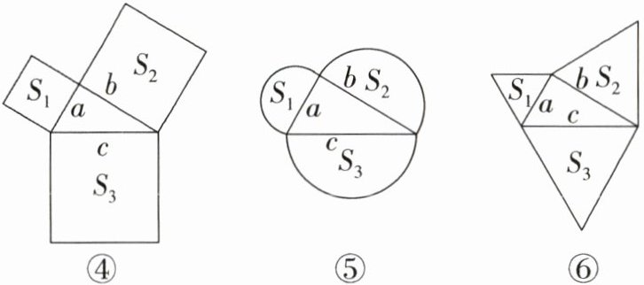 (2)①如图④⑤⑥,以直角三角形的三边为边或直径,分别向外部作正方形、半圆、等边三角形,这三个图形中面积关系满足$S_{1}+S_{2}= S_{3}$的有______个;