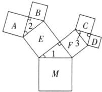 (3)$m^{2}$【解析】如图,正方形A,B,C,D,E,F,M中,对应的边长分别为a,b,c,d,e,f,m,则有$a^{2}+b^{2}=e^{2}$,$c^{2}+d^{2}=f^{2}$,$e^{2}+f^{2}=m^{2}$,