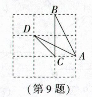 9. (2025·宿迁模拟)如图所示,在边长为 1 的正方形网格图中,点 A,B,C,D 均在正方形网格格点上.图中$∠B+∠D= $